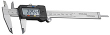 Mitta-asteikko 150 mm asti. Tarkkuus 1/100 mm. Automaattinen